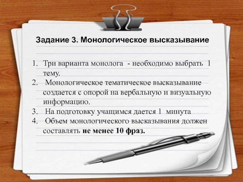 Слайд 16Задание 3. Монологическое высказывание