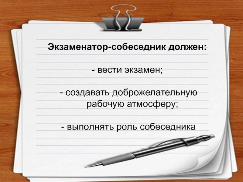 Слайд 25Экзаменатор-собеседник должен: