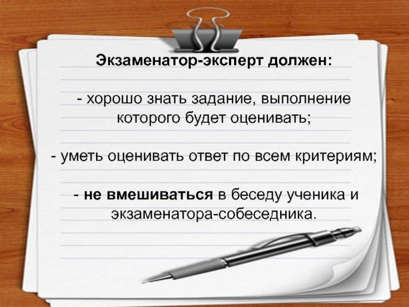 Слайд 26Экзаменатор-эксперт должен: