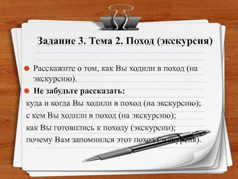 Слайд 18Задание 3. Тема 2. Поход (экскурсия)