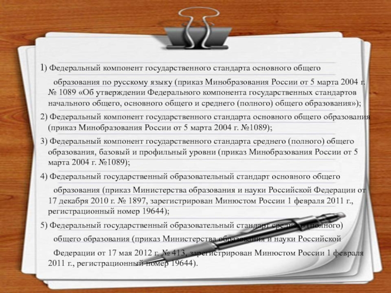 2) Федеральный компонент государственного стандарта основного общего образования(приказ Минобразования России от 5 марта 2004 г. №1089);