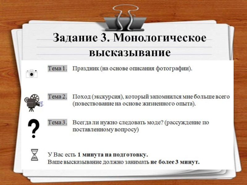 Слайд 15Задание 3. Монологическое высказывание