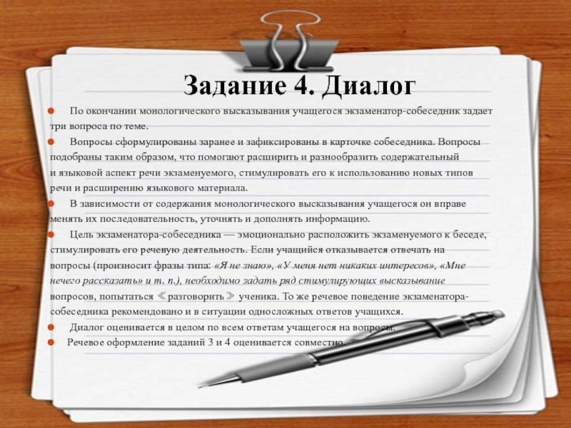 4. Участие в диалоге с экзаменатором-собеседником.