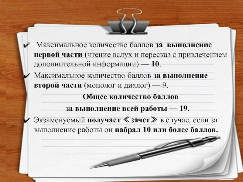 Слайд 6 Максимальное количество баллов за выполнение первой части (чтение вслух