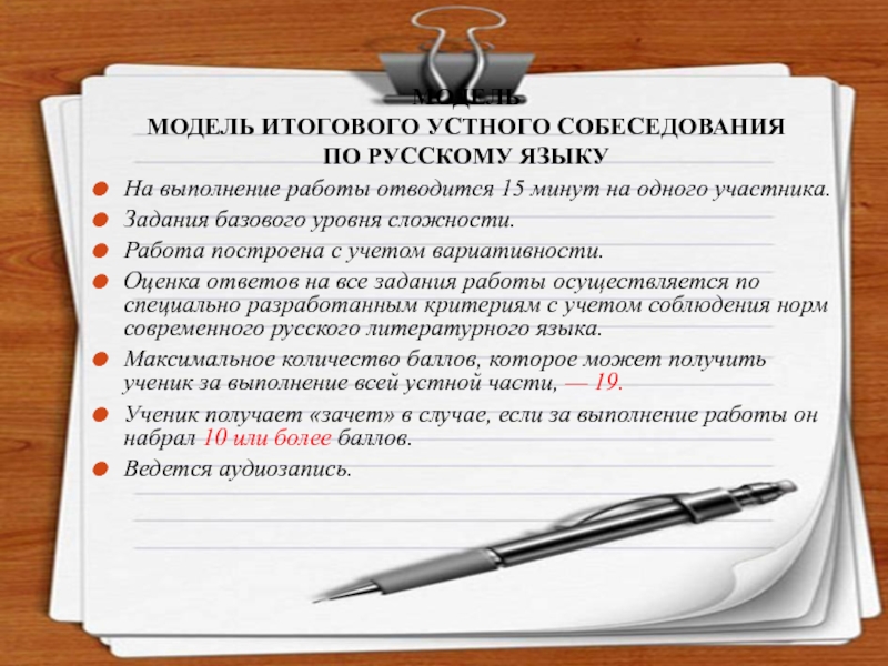 МОДЕЛЬ ИТОГОВОГО УСТНОГО СОБЕСЕДОВАНИЯ