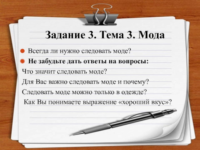 Слайд 19Задание 3. Тема 3. Мода