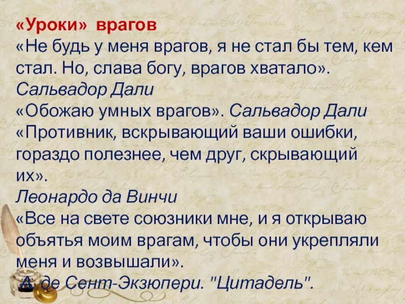 «Врагов можно победить, превратив их в друзей». Сальвадор Дали (испанский живописец)