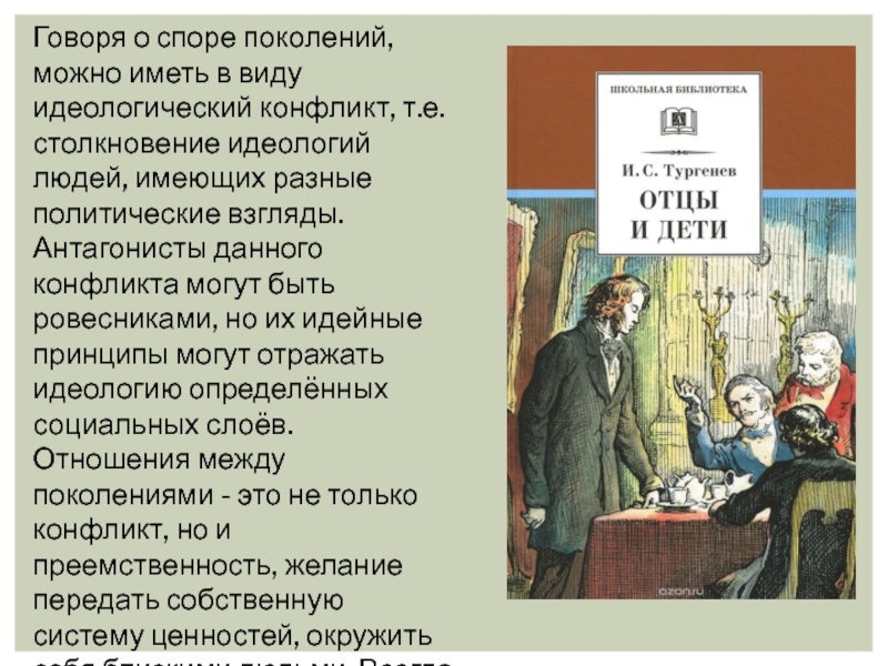 Слайд 6Говоря о споре поколений, можно иметь в виду идеологический конфликт,