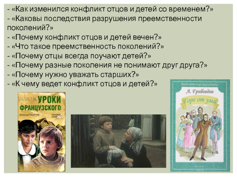 Слайд 19- «Как изменился конфликт отцов и детей со временем?»