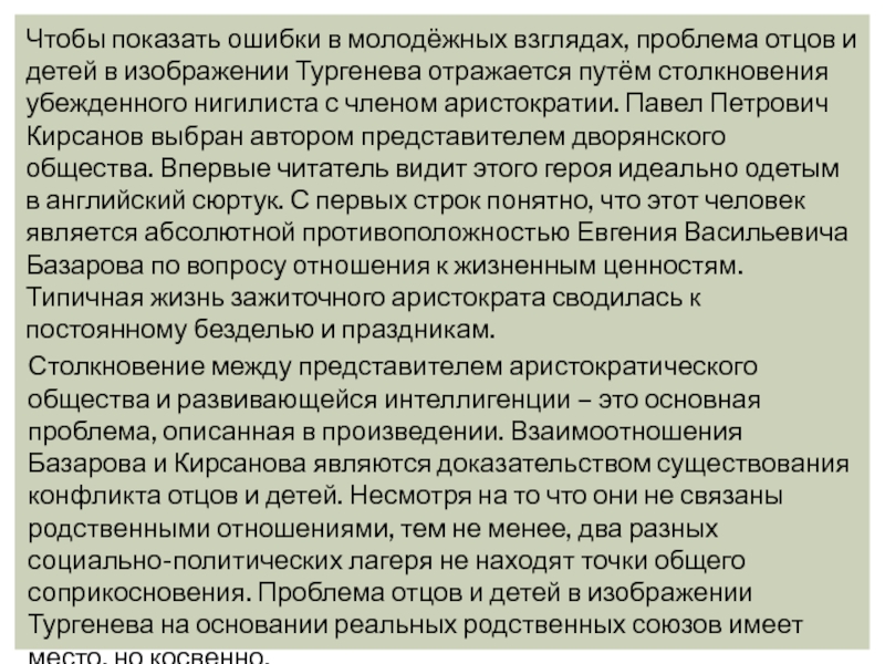 Слайд 10Чтобы показать ошибки в молодёжных взглядах, проблема отцов и детей
