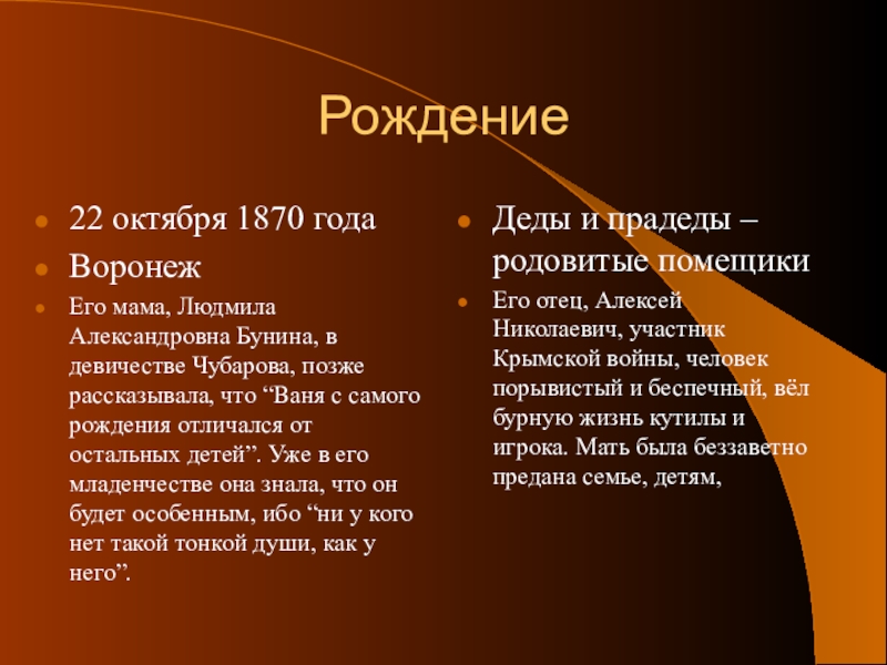 Чубарова, позже рассказывала, что “Ваня с самого рождения отличался от