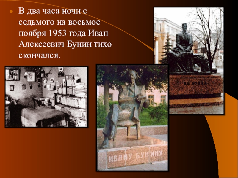 были написаны его наиболее значительные произведения. Среди них роман “Жизнь Арсеньева”, за который ему была присуждена Нобелевская премия.