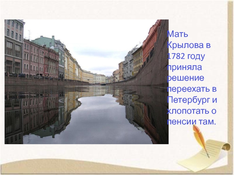 Слайд 6Мать Крылова в 1782 году приняла решение переехать в Петербург