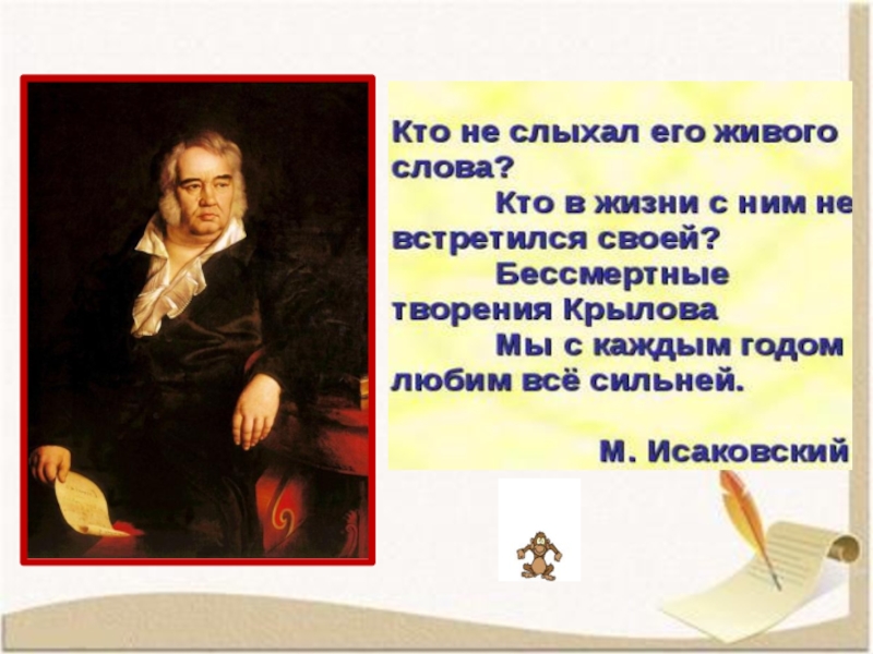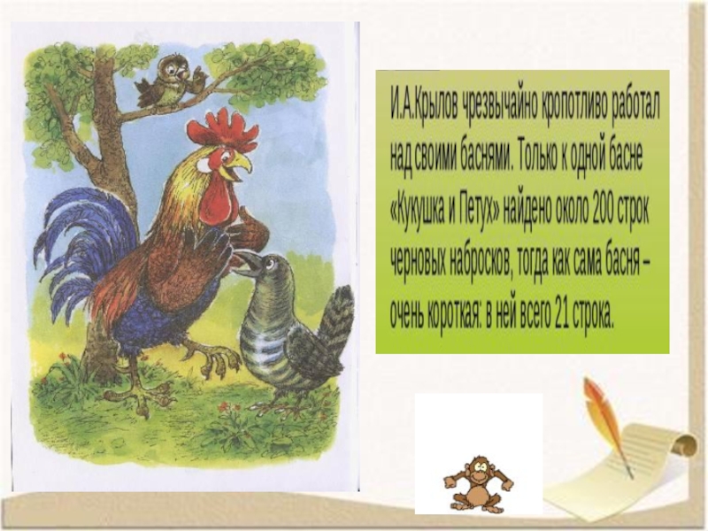 Слайд 8Свою первую басню И.А.Крылов написал, когда ему было 14 лет,