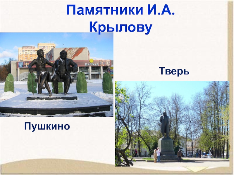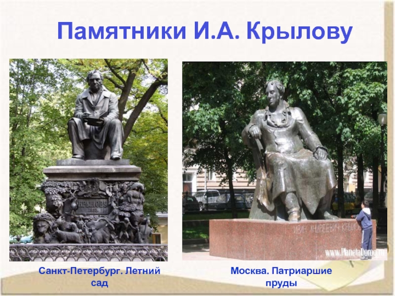 Памятники И.А. Крылову Санкт-Петербург. Летний садМосква. Патриаршие пруды