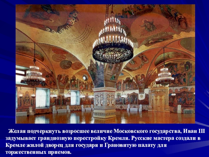 грандиозную перестройку Кремля. Русские мастера создали в Кремле жилой дворец
