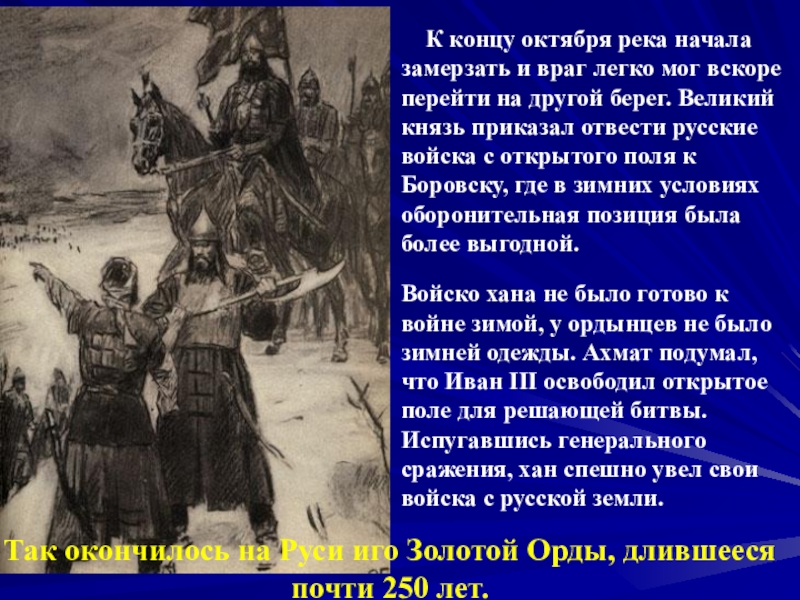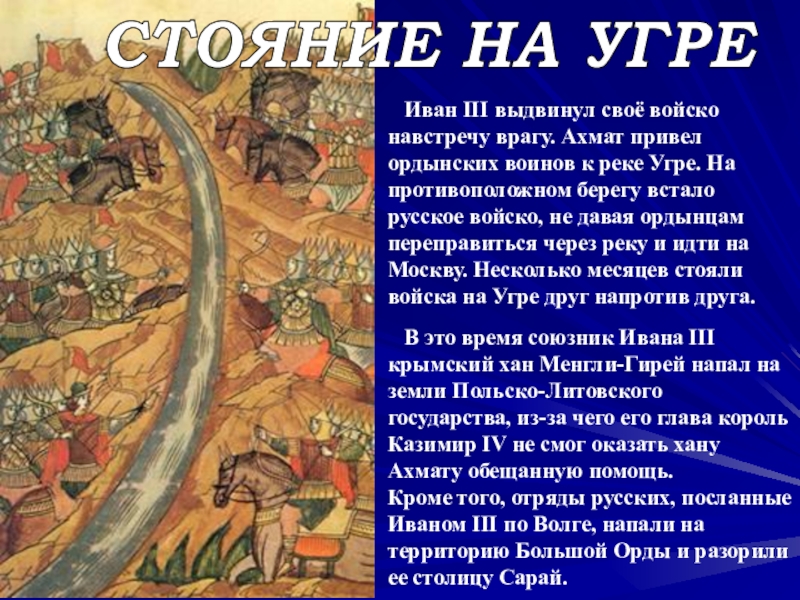 Слайд 14 Иван III выдвинул своё войско навстречу врагу. Ахмат
