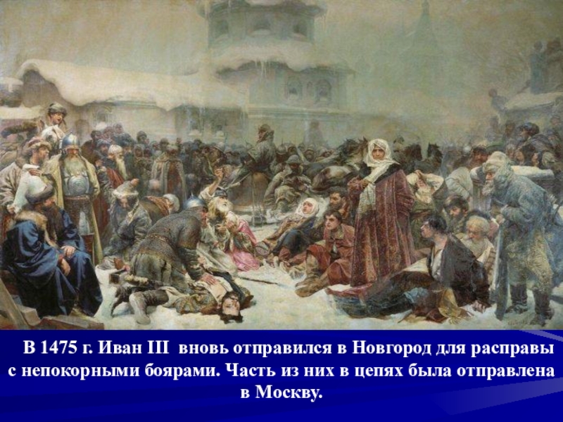 Новгород для расправы с непокорными боярами. Часть из них в