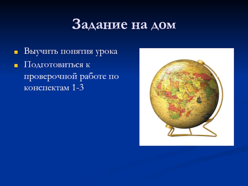 Задание на домВыучить понятия урокаПодготовиться к проверочной работе по конспектам 1-3