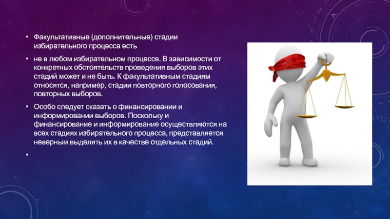 Слайд 11Факультативные (дополнительные) стадии избирательного процесса есть