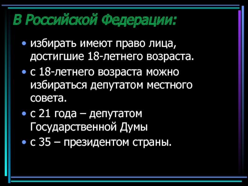 допускает, что гражданин может быть выбран депутатом или главой государства.