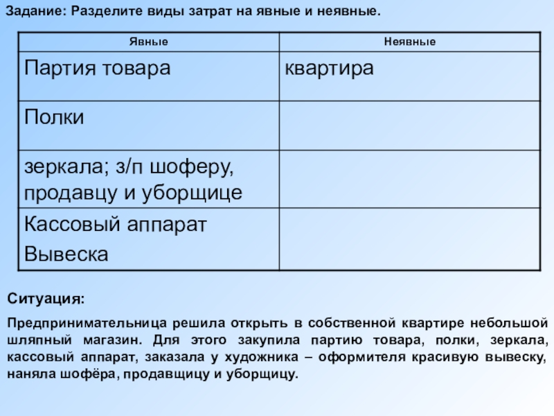 Деление издержек на явняе и неявные