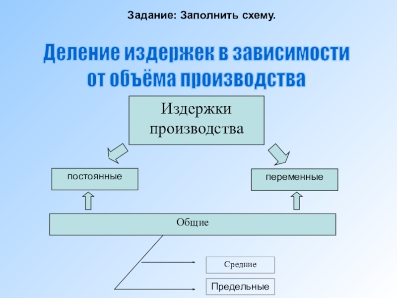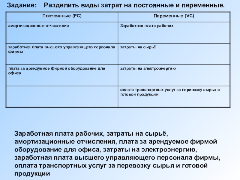 Задание: Разделить виды затрат на постоянные и переменные.