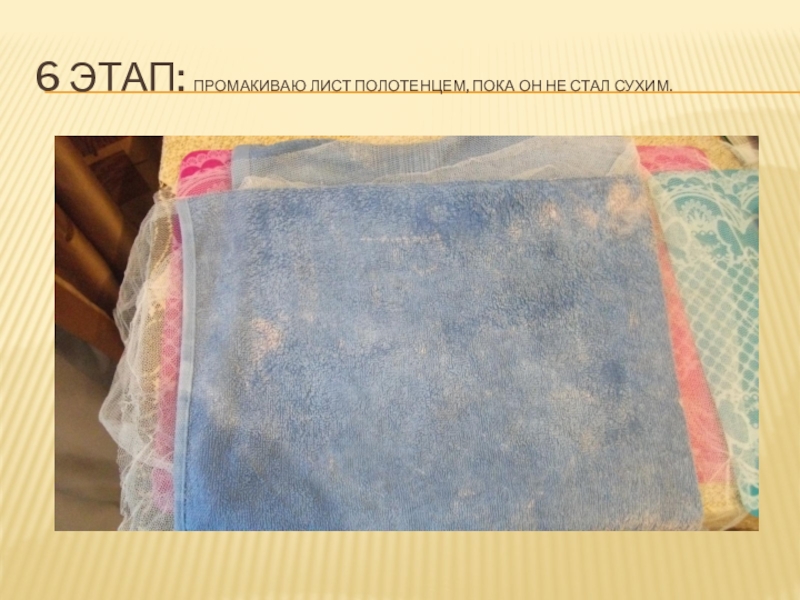 Слайд 186 этап: промакиваю лист полотенцем, пока он не стал сухим.