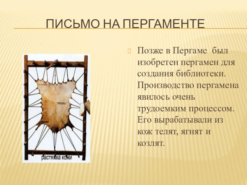 Слайд 7ПИСЬМО НА ПЕРГАМЕНТЕ
