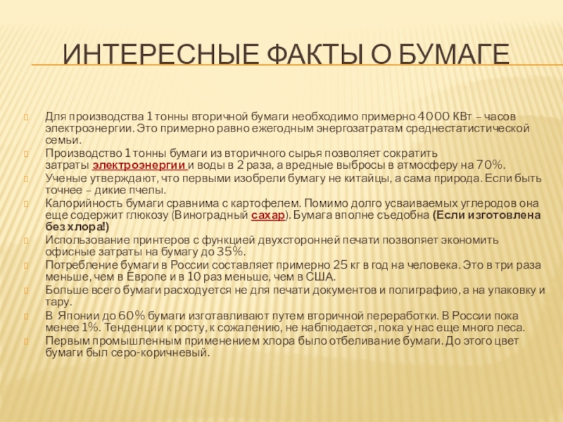 Слайд 22ИНТЕРЕСНЫЕ ФАКТЫ О БУМАГЕ