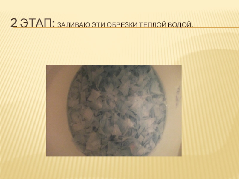 Слайд 142 этап: заливаю эти обрезки теплой водой.