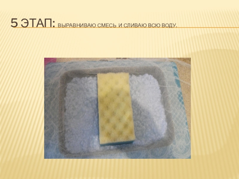 Слайд 175 этап: выравниваю смесь и сливаю всю воду.