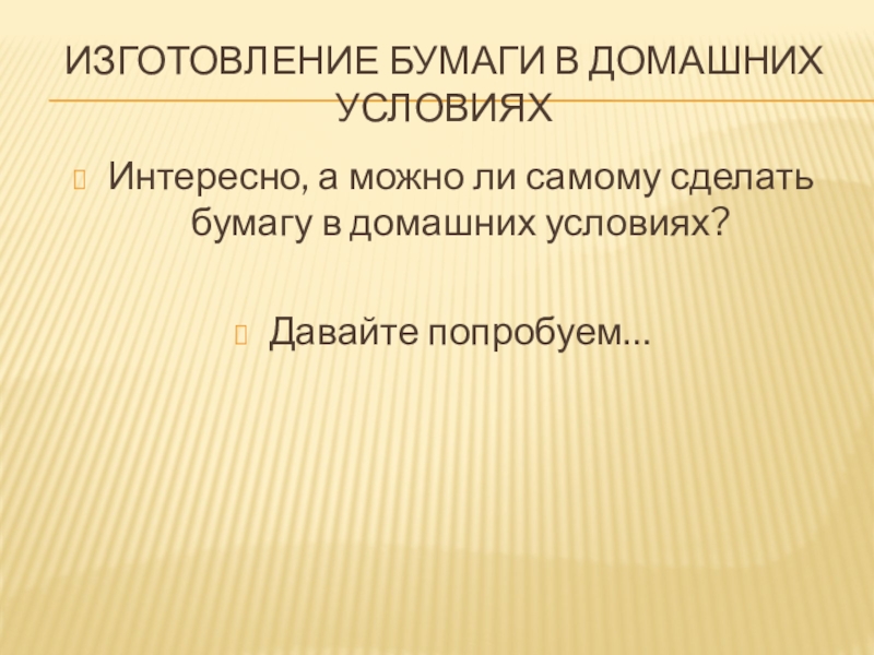 Слайд 1ИЗГОТОВЛЕНИЕ БУМАГИ В ДОМАШНИХ УСЛОВИЯХ
