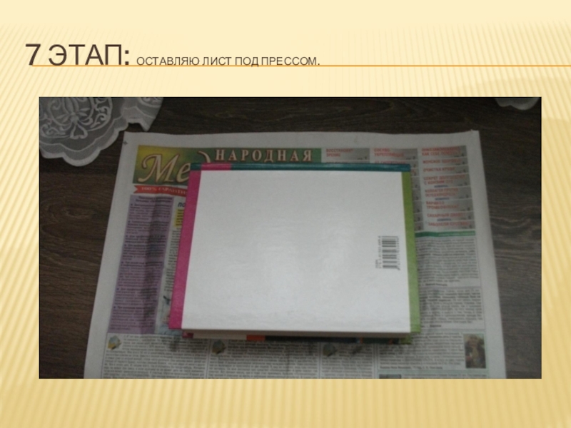 Слайд 197 этап: оставляю лист под прессом.