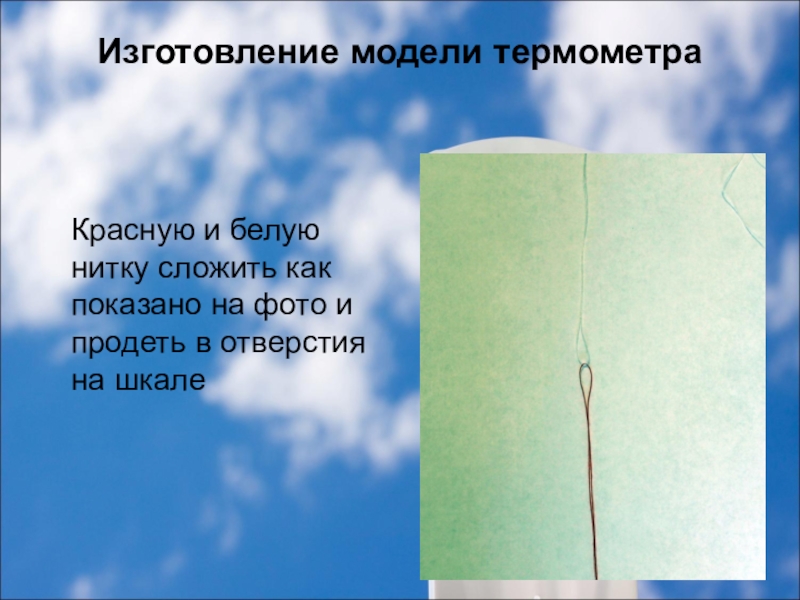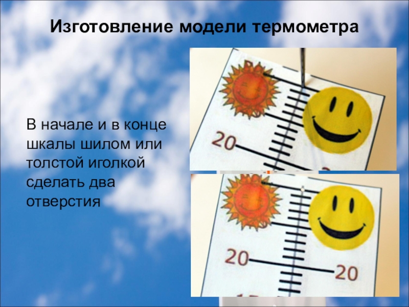 Изготовление модели термометраВ начале и в конце шкалы шилом или толстой иголкой сделать два отверстия