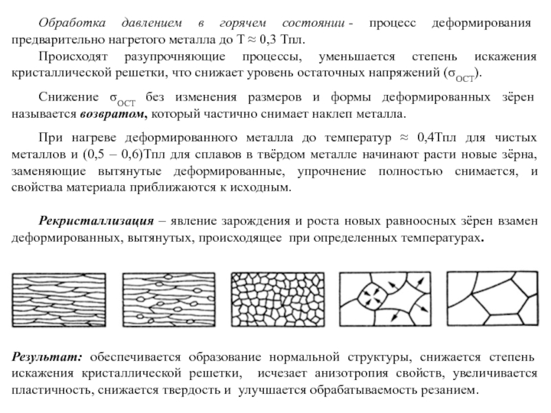 При полугорячей – нагревается незначительно (Тнагр < 0,3Тпл).