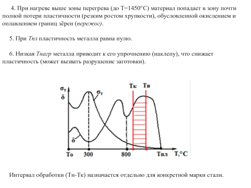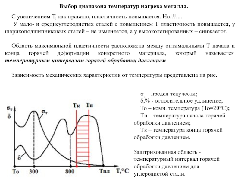Заштрихованная область - температурный интервал горячей обработки давлением для углеродистой стали.