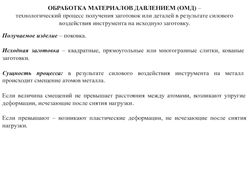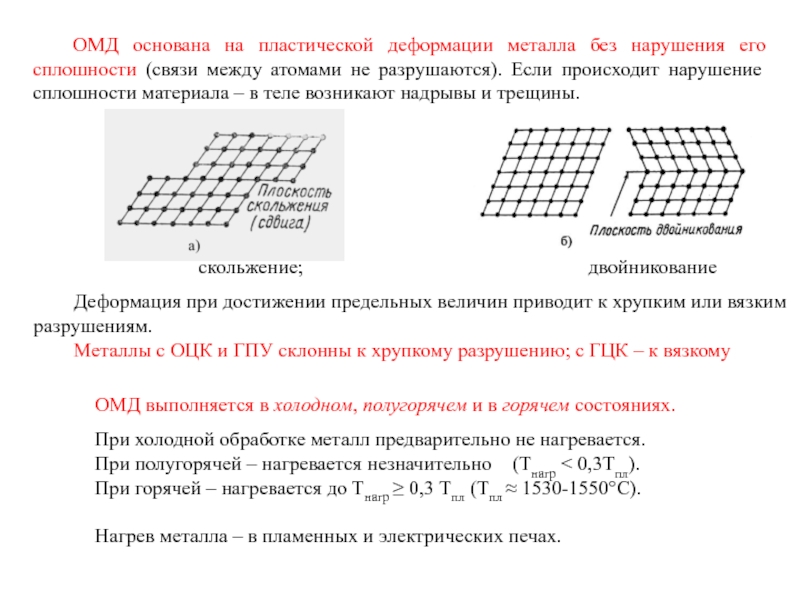 ОМД основана на пластической деформации металла без нарушения его сплошности (связи между атомами не разрушаются). Если происходит нарушение сплошности материала – в теле возникают надрывы и трещины.