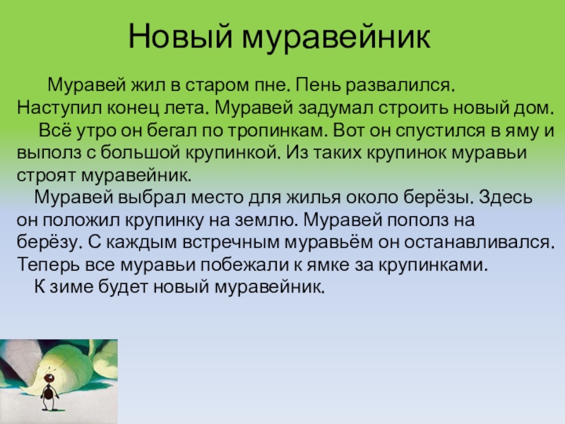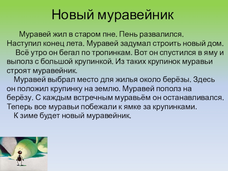 Муравей не по себе ношу тащит.