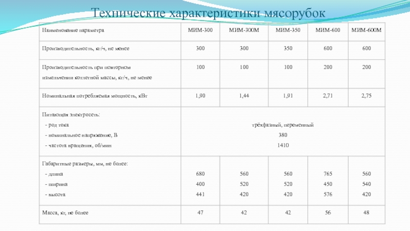 3. Изучить техническую характеристику электрических измельчителей мяса;