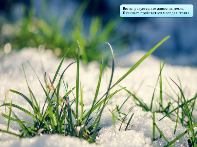 Весне радуется все живое на земле.Начинает пробиваться молодая трава.
