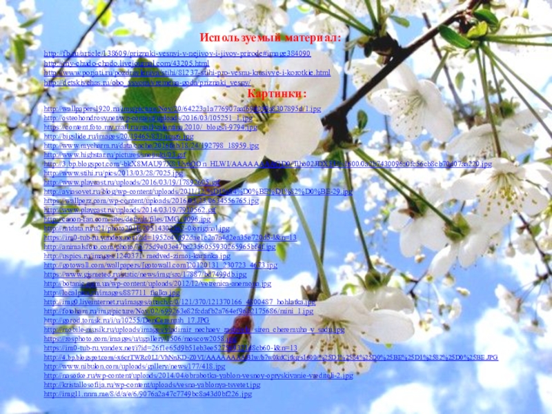 http://wallpapers1920.ru/img/picture/Nov/20/64223a1a776907aaf694099a8307895d/1.jpg http://osteohondrosy.net/wp-content/uploads/2016/03/105251_1.jpghttps://content.foto.my.mail.ru/mail/valentina.2010/_blogs/i-9794.jpghttp://bigslide.ru/images/20/19465/831/img6.jpghttp://www.mycharm.ru/data/cache/2016feb/18/24/192798_18959.jpghttp://www.highstar.ru/pictures/snejinki/03.gifhttp://3.bp.blogspot.com/-bkX8MAU97X8/Uy6QOn_HLWI/AAAAAAAAGD0/Tiho02JDXEU/s1600/0a2b7430096a0fc56cb8cb70d07aa220.jpghttp://www.stihi.ru/pics/2013/03/28/7025.jpghttp://www.playcast.ru/uploads/2016/03/19/17892605.gifhttp://aviasovet.ru/blog/wp-content/uploads/2011/12/%D1%84%D0%BE%D1%82%D0%BE-29.jpghttps://wallperz.com/wp-content/uploads/2016/03/23/0634556765.jpghttp://www.playcast.ru/uploads/2014/03/19/7910562.gifhttp://canon-fan.com/sites/default/files/IMG_0096.jpghttp://mtdata.ru/u21/photo201E/20514302562-0/original.jpghttps://im0-tub-ru.yandex.net/i?id=1952c47d92dae1c2a7a4d2ea35e720d5-l&n=13http://animalsfoto.com/photo/75/75d9e03e47bc2356055930265965bf4f.jpghttp://uspics.ru/images/1240371_medved-zimoi-kartinka.jpghttp://gotowall.com/wallpapers/[gotowall.com]20120131_230723_4673.jpghttps://www.gismeteo.ru/static/news/img/src/17887/bd7499db.jpghttp://botanic.com.ua/wp-content/uploads/2012/12/vetrenica-anemona.jpghttp://localpics.ru/images/887711_fialka.jpghttp://img0.liveinternet.ru/images/attach/c/0/121/370/121370166_4800487_hohlatka.jpghttp://fotoham.ru/img/picture/Nov/02/699263e82fcdafb2a764ef96b2175686/mini_1.jpghttp://gorod.tomsk.ru/i/u/10255/DenCeremuh_17.JPGhttp://mobile-musik.ru/uploads/images/vladimir_nechaev_rastsvela_siren_cheremuha_v_sadu.jpghttps://rosphoto.com/images/u/ugallery/1506/moscow2058.jpghttps://im0-tub-ru.yandex.net/i?id=26f1e65d9b51eb3ee527569321d8cb60-l&n=13http://4.bp.blogspot.com/-x6crTWRc0LI/VhNnKD-Z0VI/AAAAAAAAB1w/b7w0kdCjtkg/s1600/%25D1%2584%25D0%25BE%25D1%2582%25D0%25BE.JPGhttp://www.nibulon.com/uploads/gallery/news/177/418.jpghttp://nasotke.ru/wp-content/uploads/2014/04/obrabotka-yablon-vesnoy-opryskivanie-vrediteli-2.jpghttp://kristallosofija.ru/wp-content/uploads/vesna-yablonya-tsvetet.jpg http://img11.nnm.me/8/d/a/e/6/9076a2a47c7749bc8a43d0bf226.jpg Картинки:http://fb.ru/article/138609/priznaki-vesnyi-v-nejivoy-i-jivoy-prirode#image384090http://my-chudo-chado.livejournal.com/43205.html http://www.porjati.ru/pozdravleniya/stihi/81237-stihi-pro-vesnu-krasivye-i-korotkie.htmlhttp://detskiychas.ru/obo_vsyom/vremena-goda/priznaki_vesny/Используемый материал: