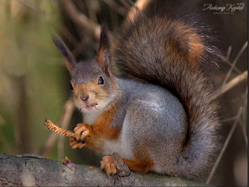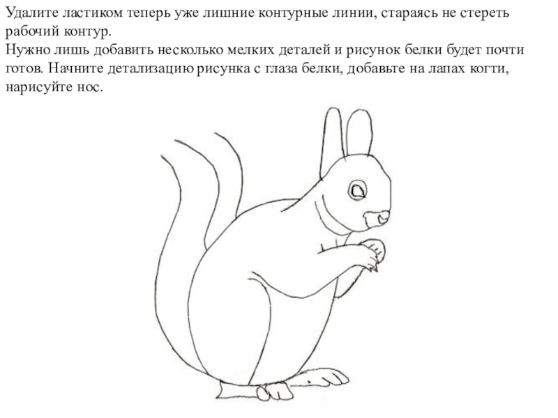 будет почти готов. Начните детализацию рисунка с глаза белки, добавьте на лапах когти, нарисуйте нос.