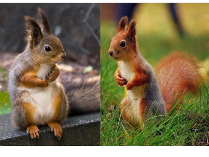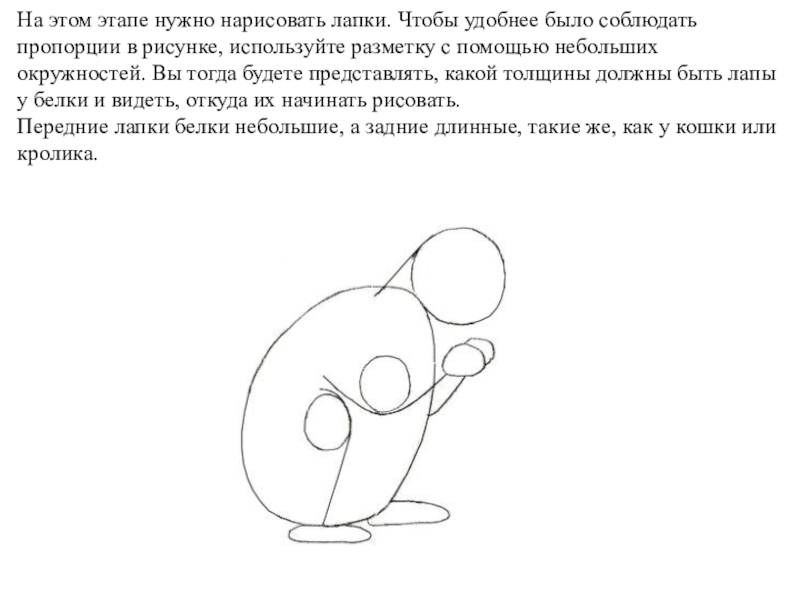 тогда будете представлять, какой толщины должны быть лапы у белки и видеть, откуда их начинать рисовать.  Передние лапки белки небольшие, а задние длинные, такие же, как у кошки или кролика.