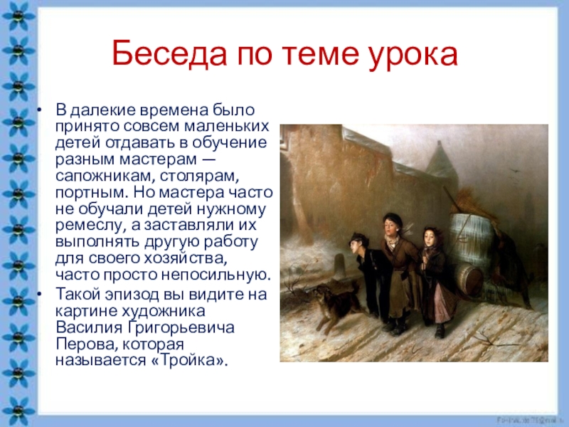 Такой эпизод вы видите на картине художника Василия Григорьевича Перова, которая называется «Тройка».