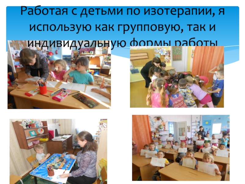 Слайд 6Работая с детьми по изотерапии, я использую как групповую, так