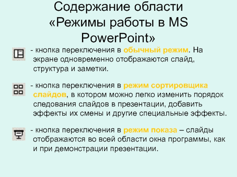 кнопка переключения в режим показа – слайды отображаются во всей области окна программы, как и при демонстрации презентации.
