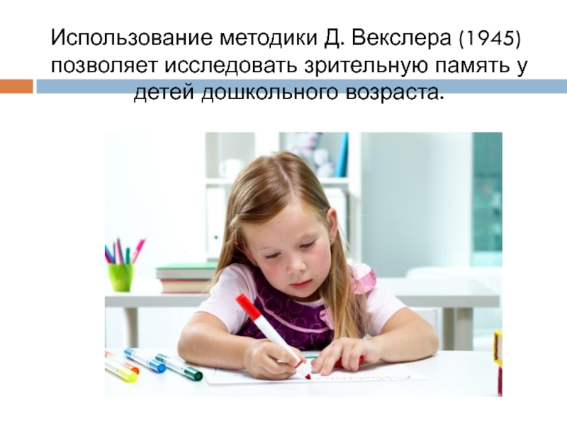 Слайд 1Изучение зрительной памяти дошкольников по методике Векслера