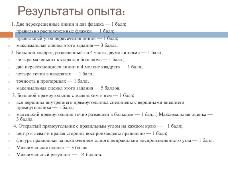 Результаты опыта:  1. Две перекрещенные линии и два флажка — 1 балл;правильно расположенные флажки — 1