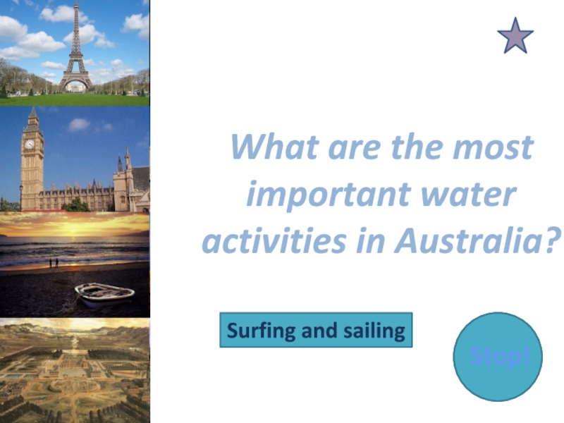 What are the most important wateractivities in Australia? Surfing and sailingStop!
